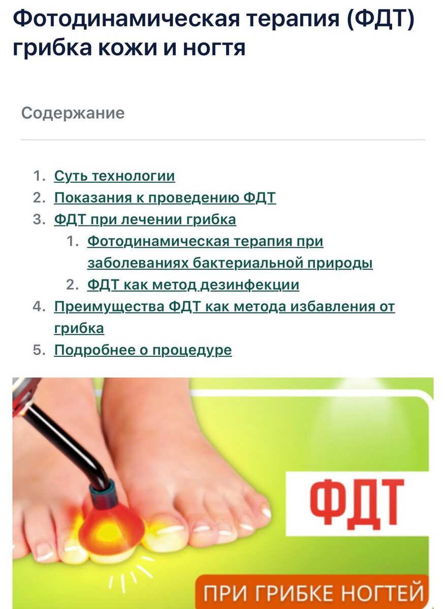 Чаще всего фотодинамическая терапия применяется при грибковых поражениях ногтей. Если вы подозреваете, что могли где-либо подхватить грибок, проверьте свои пальцы на предмет следующих симптомов: