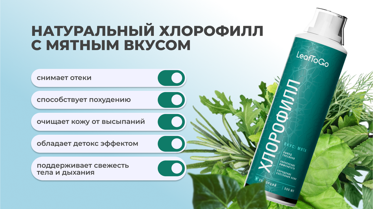 Жидкий хлорофилл LeafToGo — это удобный и эффективный способ добавить силу растений в свой рацион.