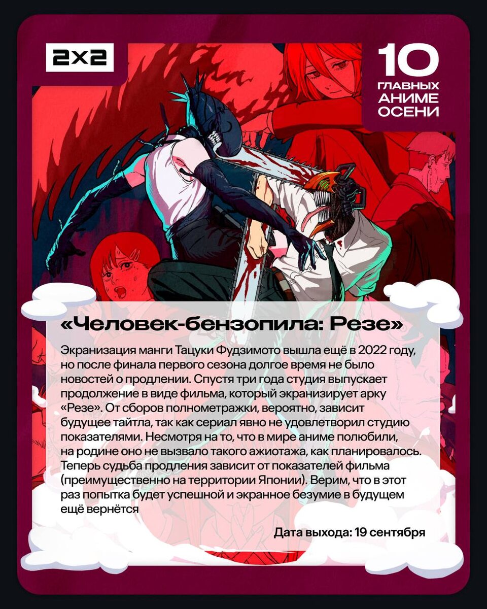 Осень не обещает быть жаркой, однако подогрев из аниме ожидается крайне благоприятный. Выделили 10 главных аниме-релизов, среди которых затаились долгожданные возвращения, многообещающие новинки и парочка больших историй. Как говорится, выбираем фаворитов и не стесняемся сохранять даты премьер