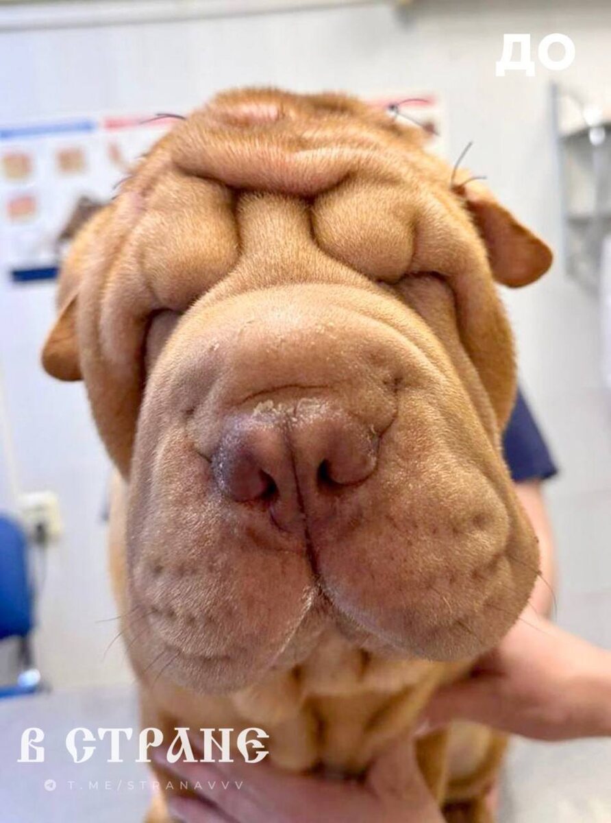 «Малыш жил во тьме». Столичные ветеринары помогли прозреть шарпею, которому не давали видеть кожные складки на голове. Из-за этого у питомца развивался хронический кератит и эрозия роговицы.