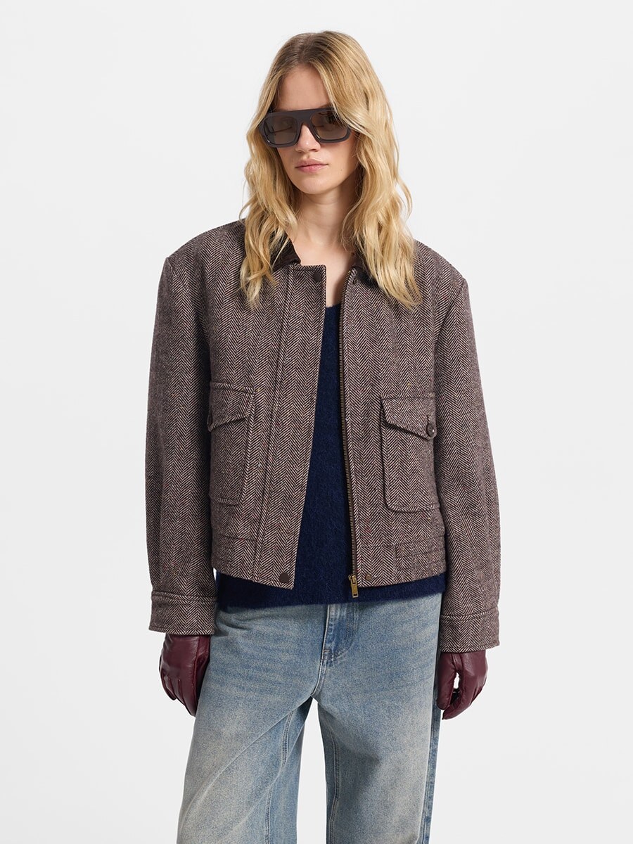 Приветствую Вас, дорогие читатели! Времени на примерку не было, хотя очень хотелось, но пробежаться по торговому залу бренда я успела. Цеплялась руками за все подряд, ведь приятные тактильно вещи мне нравятся в первую очередь. Рассматривала фасоны, оттенки, качество тканей и фурнитуры, прикидывала с чем это можно носить. Коллекция мне очень понравилась, особенно верхняя одежда. Бюджетным Love Republic теперь бывает только в период распродаж, но стоит заметить положительный факт, цены ежегодно растут не просто так, качество одежды и всех сопутствующих товаров растут тоже. Начну с курток, поскольку современная куртка является отличным дополнением гардероба, сочетая в себе практичность, стиль и комфорт. Куртка из шерсти с замшевым воротником. Выполнена из пальтовой ткани с добавлением шерсти, прочной и износостойкой, обладающей хорошими теплозащитными свойствами. Узор «ёлочка» и замшевый воротник делают модель особенно привлекательной и универсальной для различных образов. Бомбер из шер