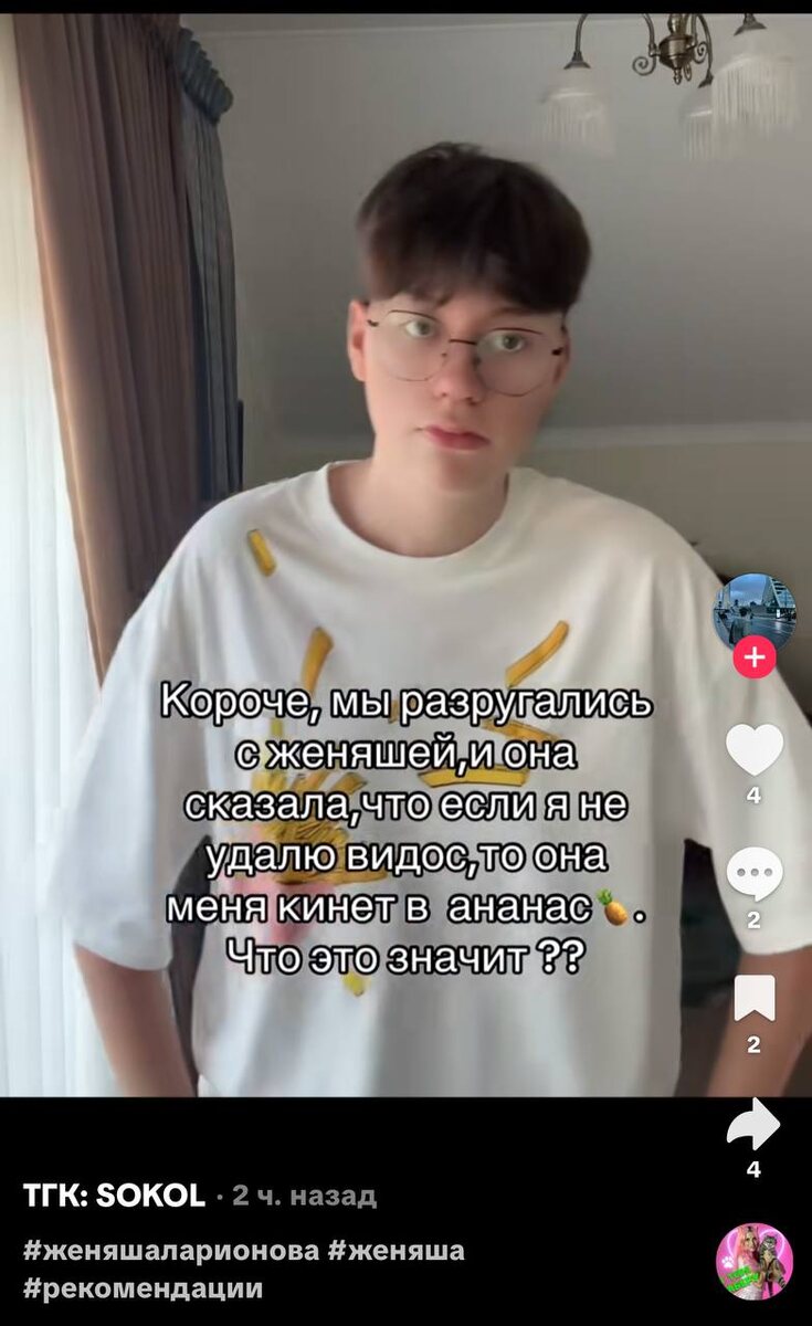 Кисули короче в атаку 😅 нужна ваша помощь, есть чел в ТТ , у него со мной залетел видос почти на 2 ляма и я ему написала если ролик не удалит , то его кину в ананас 🍍🤣🤣🤣 он не понимает что это значит , напишите ему что это значит 🤣https://vt.tiktok.com/ZSDQX7G6x/