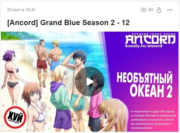 С выходом 12-ой серии ОДНОГОЛОСКУ закончили. Если кто ждал выхода сезона целиком, милости просим приходить смотреть. Если подписываться надолго для вас дорого, вы можете оформить подписку на ОДИН МЕСЯЦ (300 рублей) и посмотреть сезон целиком. Таким образом вы обойдётесь без слива и поддержите наш проект. Также в течение этого месяца вы сможете посмотреть и другие уже готовые тайтлы в нашей самой весёлой озвучке. Тот же самый трюк вы сможете провернуть, и с подпиской 2 уровня, когда полностью выйдет ТА САМАЯ озвучка. boosty.to/ancord