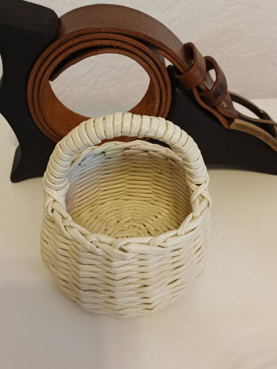 Меня уговорили не ждать когда всё будет идеально, а начинать продавать сразу. Я, конечно, еще вижу огрехи, но в целом уже довольна результатами. Простые формы получаются вполне достойно, а там, где есть нюансы, руки сами тянутся сделать следующую вещь лучше. Особенная любовь — небольшие корзинки. Вот такие компактные, аккуратные, живые. Их удобно использовать на кухне, на столе, в прихожей — под хлеб, фрукты, клубочки, ключи. Мне нравился сам процесс плетения, но постоянно делать одно и то же скучно, а вот время от времени плести такие корзинки на продажу — уже веселее. Ещё я плету подносы и шкатулки. Их мне и самой нужно много, но всему есть предел: дом не резиновый. Поэтому часть вещей остаётся у меня, а часть уезжает в новые дома. Так у меня есть возможность пробовать разные варианты, не превращая квартиру в склад. А вот это — шкатулка‑гриб. Ну, прелесть же! Изначально я делала её для себя — хотела хранить там карандаши. Ножка получилась толстенькая, и мне это как