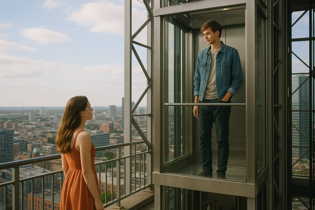 Эта задача по физике предлагалась на централизованном тестировании белорусским выпускникам несколько лет назад. Честно, когда первый раз читала это условие, плакала, такая романтическая история. Попробуйте порешать, дорогие (в прямом смысле слова, так как вы у меня на вес золота) подписчики. Парень, находящийся в середине движущейся вниз кабины панорамного лифта торгового центра, встретился взглядом с девушкой, неподвижно стоящей на расстоянии D = 8,0 м от вертикали, проходящей через центр кабины (см. рис.). Затем из-за непрозрачного противовеса лифта длиной l = 4,1 м, движущегося на расстоянии d = 2,0 м от вертикали, проходящей через центр кабины, парень не видел глаза девушки в течение промежутка времени Δt = 3,0 с. Если кабина и противовес движутся в противоположных направлениях с одинаковыми по модулю скоростями, то чему равен модуль скорости кабины? Ответ приведите а сантиметрах в секунду.