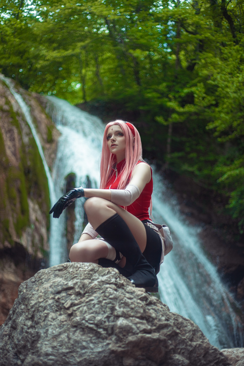 Сакура Харуно — одна из самых ярких и сильных героинь вселенной «Наруто». От решительной ученицы Цунаде до опытной ниндзя и верного союзника команды №7 — её путь полон преодолений и побед. В этом косплее отлично передана энергия и характер Сакуры: уверенный взгляд, готовность к бою и гармония с природой, которая так близка миру шиноби. Атмосфера водопада и скалистого окружения делает образ ещё более живым, словно кадр из самого аниме. Фэндом: Наруто