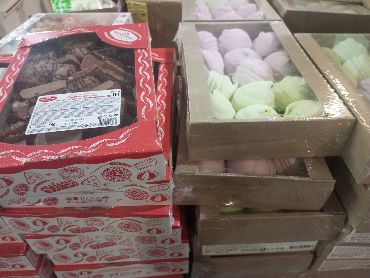 Как бы часто я не слышала стереотипы про "Светофор", я регулярно вижу довольно большое количество покупателей и в самом магазине, и тех, кто оттуда выходит - нередко можно заметить, что люди приезжают на машинах и возвращаются с целыми пакетами покупок. Кто-то действительно все основное приобретает здесь, кто-то выборочно покупает некоторые продукты, а кому-то и вовсе нравится лишь бытовая химия и товары для дома. При любом из этих вариантов уместно будет сказать, что магазин-то неплохой, нужно просто уметь выбирать, а не критиковать абсолютно все лишь потому, что не понравились какие-то определенные товары. За более чем 5 лет покупок в "Светофоре", у меня накопилось и много хороших приобретений, и тех, на которые я потратилась зря, но пока я все же заглядываю сюда. И в обзоре хочу показать то, что нашла в этот раз, все же разумнее обсуждать актуальный ассортимент, а не говорить о том, что понравилось год назад: С кондитерскими изделиями просто, они почти везде одинаковые и далеки от и