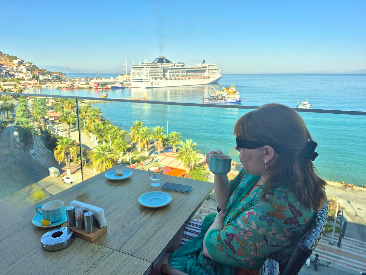 Ещё на этапе бронирования я обратила внимание, что город, судя по всему, довольно изысканный: Booking предлагал достаточно дорогие «сытые» отели, и я поначалу поглядывала на сетевой DoubleTree Hilton. В итоге, правда, выбрала другой отель — Ilayda Avantgarde. Очень достойный четырёхзвездник, мне понравился, готова рекомендовать. Позднее моё мнение об изысканности дополнилось белоснежными круизными лайнерами, которые швартовались в порту. Это очень красиво и, как мне кажется, не попсово (хотя вообще не моя риторика, чьёрт побьери).
