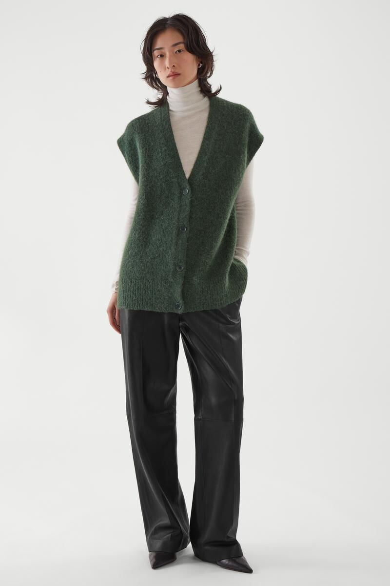 Жилеты сезона осень–зима 2025–2026 отличаются разнообразием. В классике, это модели из костюмных тканей, которые можно надеть с белой рубашкой и брюками, но они также отлично смотрятся с джинсами.