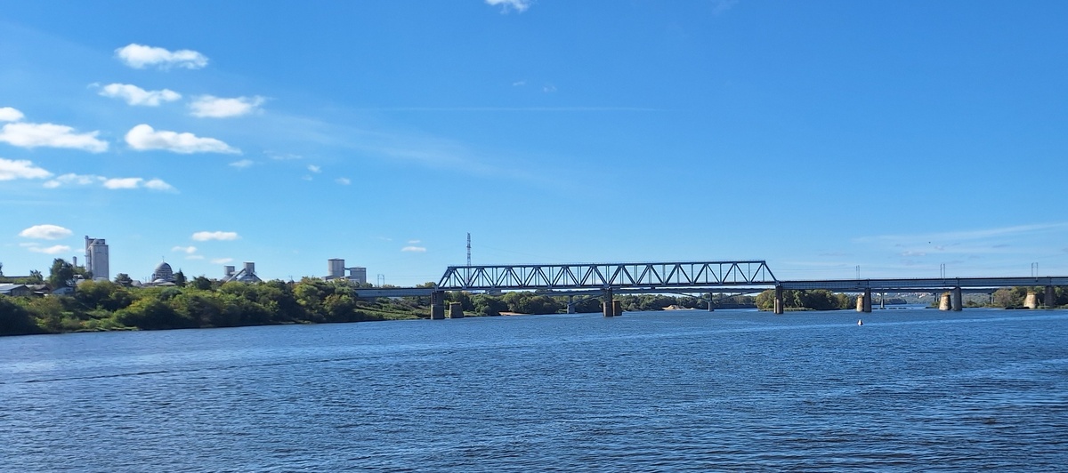 Оглядываемся назад и видим 2 моста через Оку, один железнодорожный, в Рязань и дальше, один - автомобильный, в Щурово, бывший пригород, а теперь район Коломны.