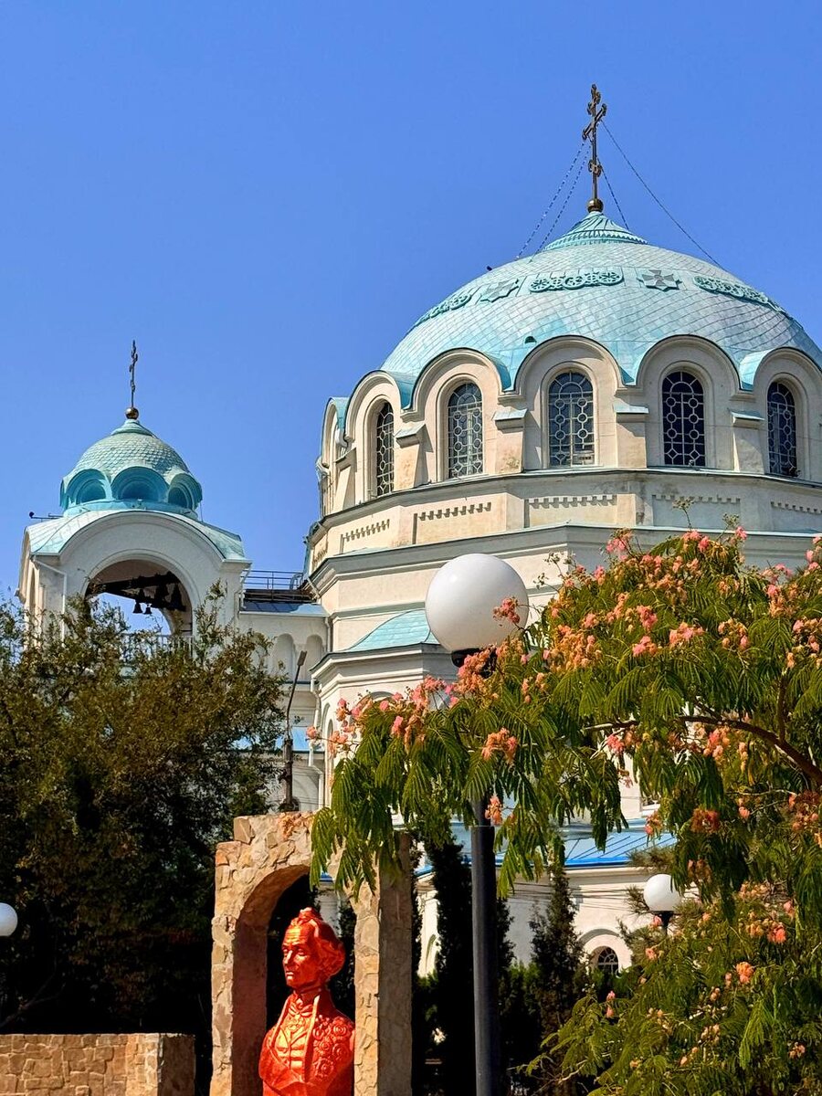 🚌 Мы с моей подругой сели на автобус и поехали в Евпаторию, это была наша первая дальняя совместная поездка, билет стоил около 550р, ехать от Севастополя ~2,5ч) Есть прикол, что я по телефону кому-то назвала Евпаторию «Европаторией» ахах и мы с этого смеемся до сих пор 😁 а еще, мне казалось что везде написано мое имя ахах «Виктория».. Значит мы первым делом поехали на розовое озеро, т.к я очень хотела его увидеть, про него есть пост на канале) можете почитать Что же было дальше? а даааальше, мы пошли поглядеть на микрорайон «старый город», в нем напр. есть квартал «малый Иерусалим» там находится стена плача, еврейская синагога итд.. ох уж этот Иерусалим 😁 не отпускает он меня ахах) Там узкие улочки, цветы, и все сделано из похожего камня, но он другой - ракушечный. ну вайб и правда чисто Иерусалимский) Для меня Евпатория очень контрастная была, как и в целом весь Крым) ну вот ты идешь и сначала встречаешь истинно питерское здание, чуть проходишь видишь обшарпанную советску