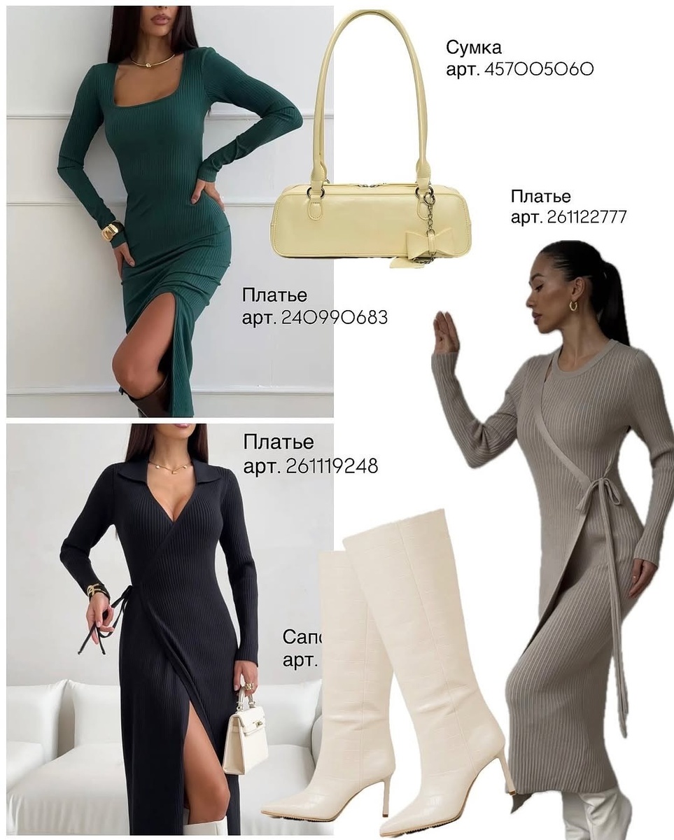 Трикотаж, правильные вырезы и грамотно выбранные акценты — вот три секрета, благодаря которым осенние комплекты выглядят благородно и «собранно». На фото — две мини-капсулы с Wildberries: первая — про трикотажные платья и молочные сапоги, вторая — про кожаную юбку и блузы на запах с яркой сумкой. Разбираю каждую находку строго по порядку с артикулами, даю советы по посадке и сочетаниям.