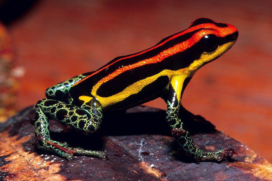 Привет, мои дорогие любители необычной земной фауны, сегодня мы отправимся в густые леса Амазонии, где влажный воздух наполнен пронзительными криками птиц и запахом прелой листвы. Среди этих звуков и теней живёт герой, крошечный и яркий, будто забытая бусинка с древнего ожерелья. Он так мал, что легко прячется на ладони, и так заметен, что не спутать его ни с кем. Его окраска выглядит так, словно природа поручила работу художнику, у которого под рукой оказался лишь набор фломастеров. Линии здесь прямолинейные, цвета простые и броские, без полутонов и оттеночных изысков — но именно эта детская, почти наивная яркость и делает лягушку заметной и запоминающейся. Это Ranitomeya uakarii — миниатюрная ядовитая лягушка из семейства дендробатид, чей рост едва достигает двух сантиметров. Но не обманывайтесь: в её микроскопическом теле скрыта целая химическая лаборатория. Ядовитые вещества, которые она получает из пищи, делают её несъедобной для почти любого хищника. В джунглях лучше сто раз поду