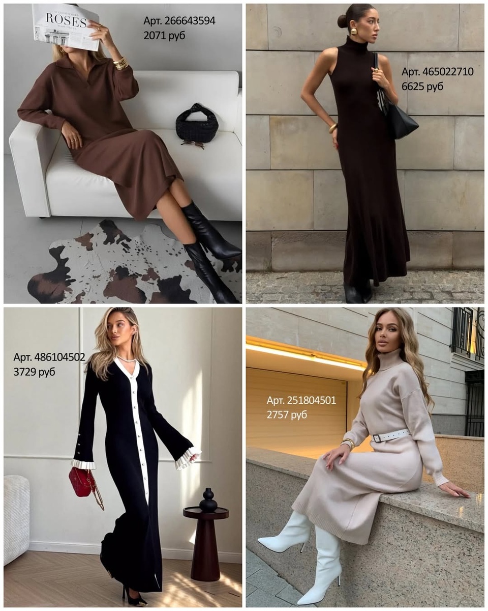 Вязаное платье — идеальная формула «красиво + тепло + быстро». На фото — восемь моделей из WB, каждая со своим характером: от графичного мини до благородной миди. Разбираю каждую находку по порядку с артикулами, даю нюансы посадки, фактуры и готовые сочетания.