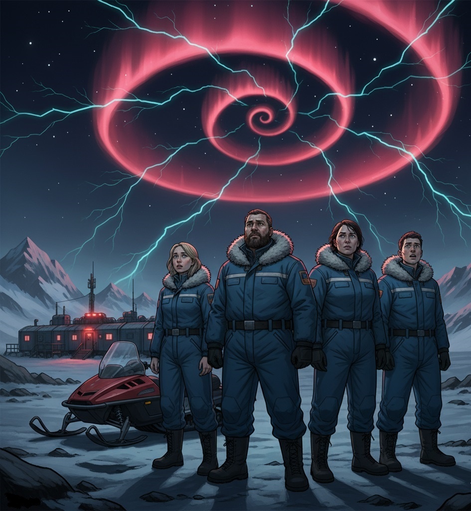 А высоко в чёрном, беззвёздном небе над станцией вдруг вспыхнуло и затрепетало южное сияние. Но его цвет был не привычным зелёным или фиолетовым. Оно было кроваво-красным, как свежая рана. И его форма, на мгновение сложившись в чёткий, видимый даже сквозь снежную мглу узор, напоминала тот самый знак - три сцепленных кольца, горящих над антарктической пустыней и, он был в этом уверен, над всем миром, словно печать начавшегося апокалипсиса.