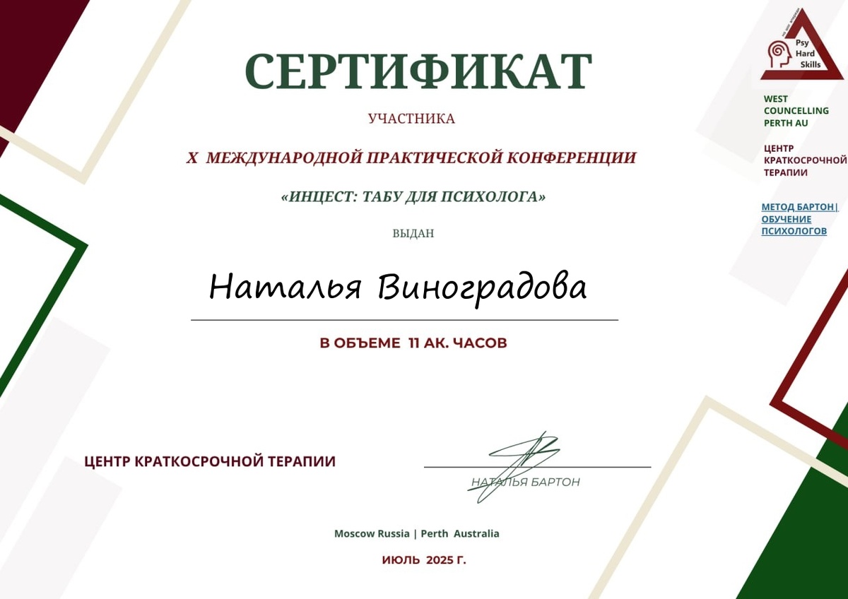 В конце июля я посвятила два дня глубокому и сложному профессиональному погружению. Я приняла участие в международной практической конференции на тему, которая до сих пор для многих остается табу, - «Инцест: табу для психолога». Это были два дня интенсивной работы, откровенных дискуссий и, что самое важное, получения практических инструментов для помощи тем, кто столкнулся с одной из самых разрушительных форм насилия.