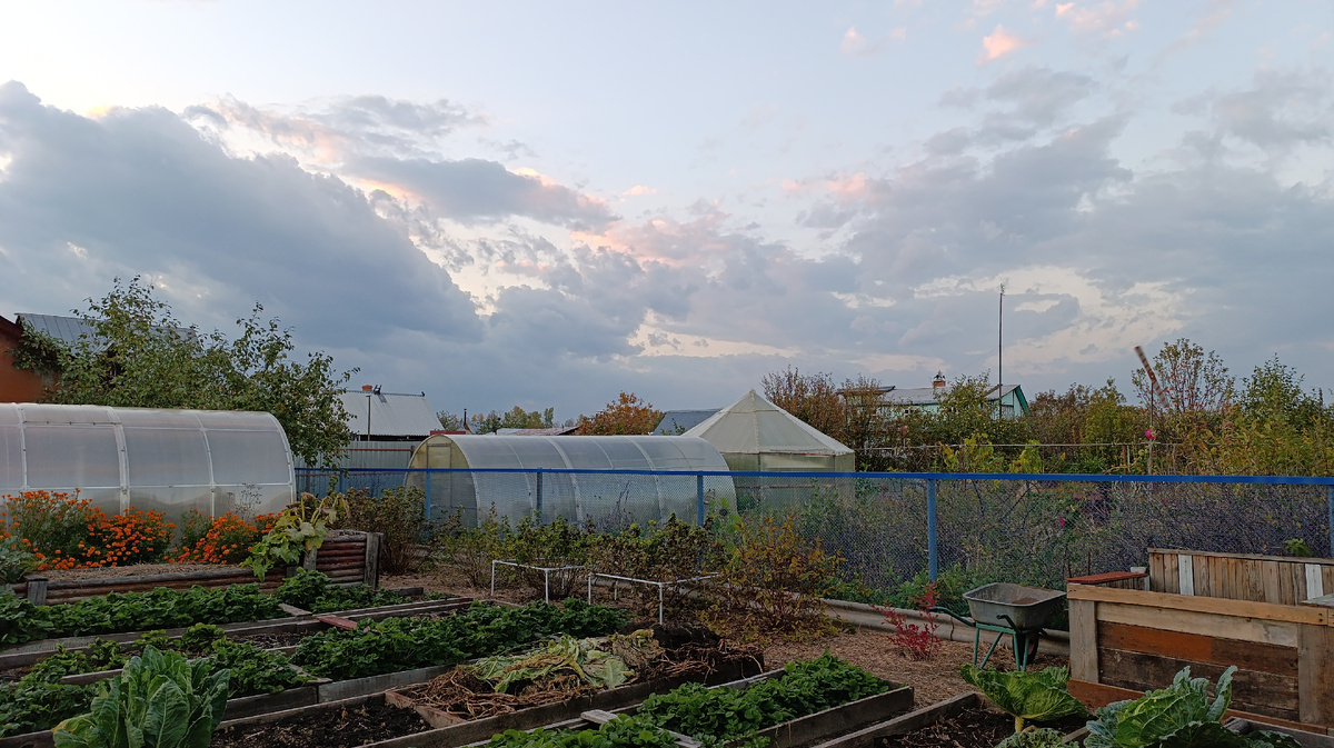 Какой вчера был роскошный вечер! Тёплый, с нежным ветерком. Я вышла, чтобы закрыть теплицу, в которой остался куст огурцов и несколько кустов перцев, и не захотела заходить обратно в дом. Послонялась по двору, потом прошлась по улице. Как же хорошо! И небо опять необыкновенное! Вчера я так наработалась, что вышла с огорода, что называется, "на зубах". Казалось бы, всего-то, посадить чеснок, нарциссы и тюльпаны. Ага. Всего-то. Я ещё хотела постричь газон и это надо было сделать именно вчера, пока не зарядили дожди, но просто не смогла, так устала. С утра я притащила в дом все луковицы, хранившиеся у меня в подсобке. Развела "Максим" и занялась их протравливанием. Получилось вот такое количество посадочного материала. В несколько приёмов всё это добро я вынесла на улицу и приступила к посадке. Сначала чеснок, грядка была подготовлена накануне. Потом нарциссы. Я их не покупала, со мной поделились. Где-то штук двадцать хороших, крупных луковиц. Они все пошли на новую клумбу возле дома. Но