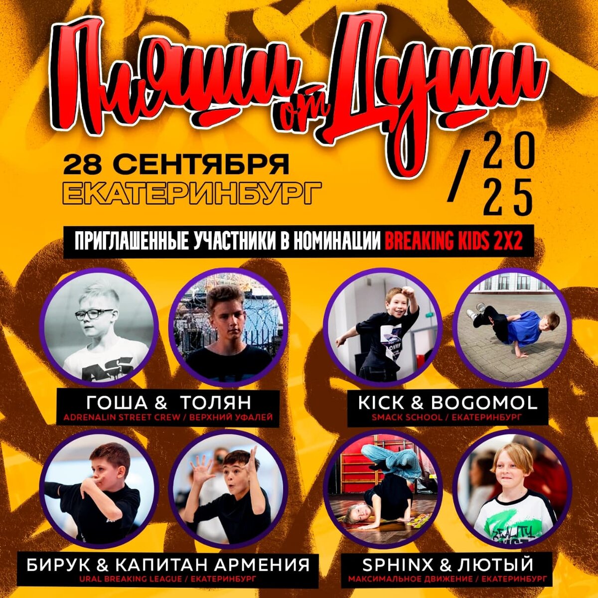 Уфалейские танцоры брейк-данса Георгий Калиничев и Анатолий Мехнин вошли в список приглашённых гостей регионального фестиваля брейкинга «Пляшем от души» в номинации Breaking Kids 2x2. Всего в номинации восемь приглашенных танцоров, шесть из которых представляют Екатеринбург, а двое – Верхний Уфалей. Уфалейцы давно зарекомендовали себя как опытные танцоры с уникальным стилем, также воспитанники Игоря Пировских имеют большое количество наград высокого уровня. Статус почетного гостя освобождает уфалейцев от участия в отборе. Именно с ними будут биться за выход в финал участники, прошедший отбор. Танцевальный баттл состоится 28 сентября в Екатеринбурге.