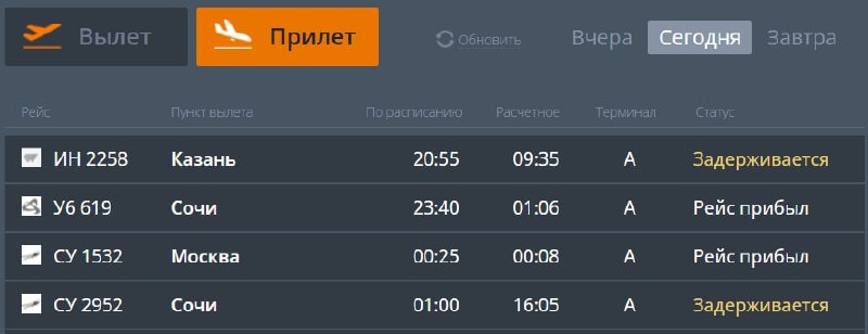 Самолеты из Сочи и Казани прилетят в Челябинск на полдня позже По данным Росавиации, в аэропортах Сочи и Геленджика ввели временные ограничения. Борт «Аэрофлота» из Сочи должен был приземлиться в Челябинске в час ночи, сейчас он ожидается к 16:05. На такое же время задержан обратный рейс. Самолет из Казани авиакомпании Red Wings должен был прибыть вчера в 20:55, сейчас он ожидается в 9:35. Возможная причина — следствие прошлых ограничений. В авиакомпаниях информации о задержке обоих рейсов нет.