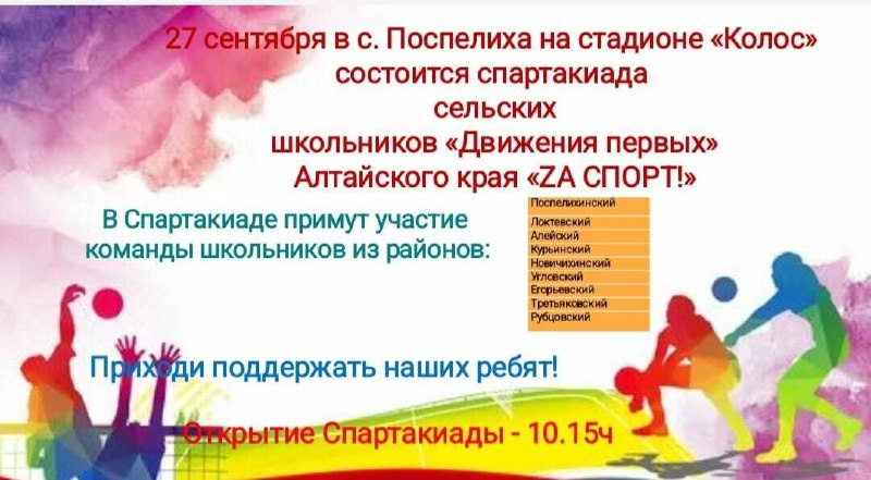 27 сентября на стадионе «Колос» состоится спартакиада сельских школьников Движения Первых Алтайского края «ZА СПОРТ