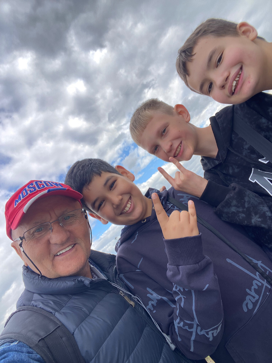 Моя дорога лежала в Тюмень. Близилось первое сентября. Внучка София идёт в школу. Я еду на это великолепное мероприятие, которое случается у каждого один раз в жизни. Денег у меня не густо, живу на пенсию, немногого даёт младший сын Евгений, зарабатываю в Интернет малость. Не зашикуешь. Беру билет на электричку. Удобное время для выезда пять утра и удобное время для приезда в девять с половиной часов. Этот раз я ехал до Винзилей. Там у меня друзья. Вез им продукты для здоровья, через Сдек посылать дороговато, а здесь по пути. Я крёстный папа их сына Святослава. Значит и он мой сын. Меня встретили. Я у них погостил немного. И сел на автобус до Тюмени. Меня смущало то, что автобус был полный, и мне не досталось сидячего места. Молодёжь не хотела мне его уступать. Я себя успокоил, что выгляжу молодым. Немного постоял. Потом места освободились. Доехав, вполне комфортно до станции назначения. Вышел на автовокзале. Набрал в 2 Гис маршрут до Ватутина. Вышло десять километров. Это для меня не большое расстояние. Я двинулся в путь. Программа позволяла выбрать оптимальный маршрут и предупреждала о препятствиях и пешеходных переходах, помощниках в преодолении автомобильных дорог. Так свободно двигаясь, я слушаю аудио программы. Соединяю полезное с приятным. На одном мосту я увидел трёх молодых, как потом выяснилось, тринадцатилетних мужчин. Я не ошибся. Парни молодые, а рассуждения мужчины позавидуют. Они фотографировались. В таких случая нужен посторонний человек, что бы в фото войти всем из группы. Я предложил свою помощь.