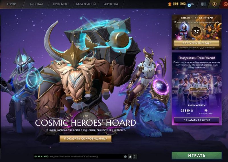 Обновление На главный экран добавили космическую сокровищницу, а компендиум перенесли в баннер