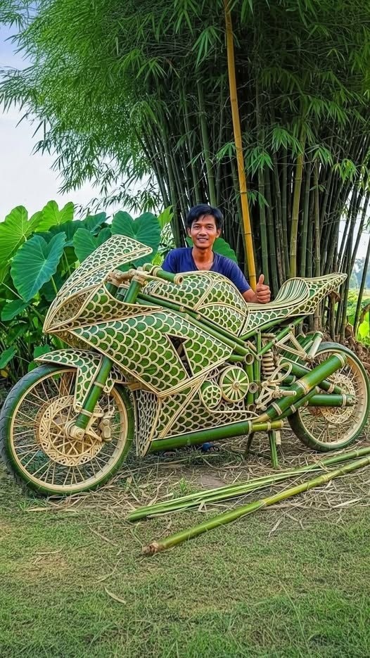 Этот мотоцикл сделан из бамбука.🛵🎋