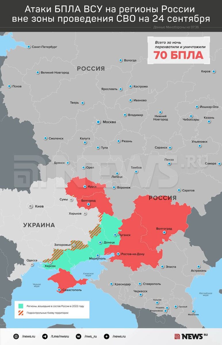 Силы ПВО за ночь сбили 70 дронов над регионами России, сообщили в Минобороны. Беспилотники уничтожили над территориями Белгородской, Курской, Ростовской, Волгоградской областей, Республики Крым и над акваторией Черного моря. ⭕️ Подписаться | Мы в MAX | Буст