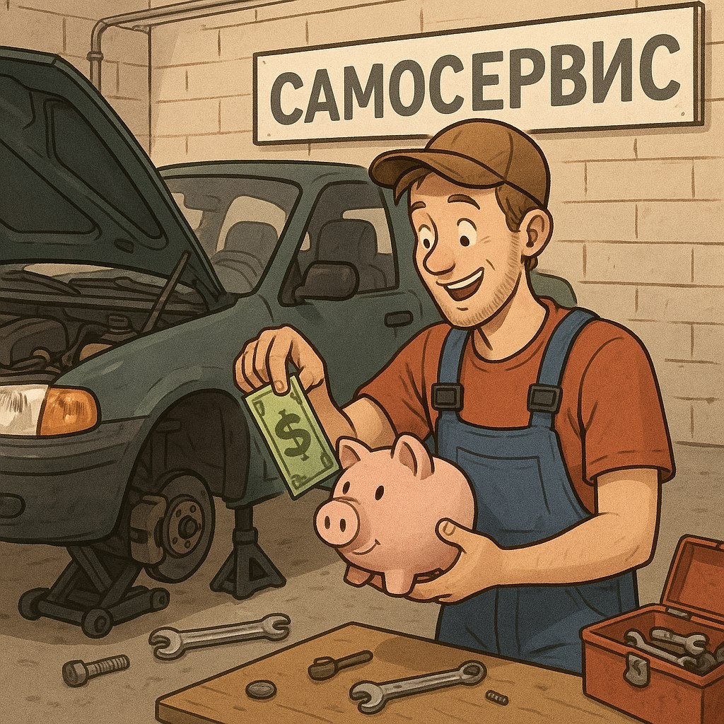 Авто в обслуживании — штука недешёвая. Но есть вариант, как сократить расходы, если руки растут из правильного места. Это сервисы самообслуживания. Там можно самому сделать простые операции с машиной и заплатить в разы меньше, чем на обычном СТО. Станции самообслуживания — это боксы с подъёмниками и инструментами, которые можно арендовать почасово. По сути, это «гараж мечты» для тех, кто хочет сам поковыряться в машине, но не имеет условий дома. На обычном СТО ты платишь не только за работу, но и за наценку, аренду, зарплату мастеров. В сервисе самообслуживания — только за время аренды. Обычно цена от 200 до 400 рублей в час. 1. Замена масла - На станции: 1500–2500 ₽ за работу. - В сервисе самообслуживания: аренда бокса на 1 час — ~300 ₽. Экономия: около 1000–2000 ₽. - На СТО в регионе: от 3000 ₽ только за работу. - В сервисе самообслуживания: среднее время замены 1,5–2 часа → аренда бокса выйдет ~600 ₽. Экономия: примерно 2400 ₽. - На станции: от 4000–5000 ₽ за работу. - В сервисе