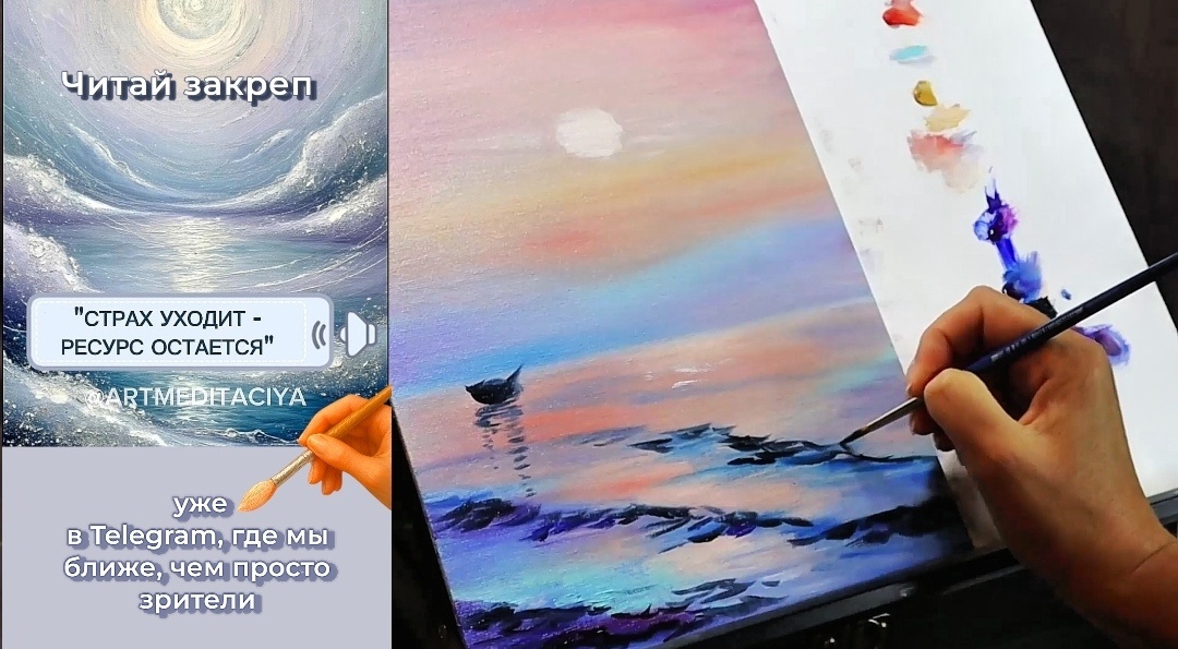 🌊🌊 После шторма: проживи стресс через живопись и отпусти напряжение кистью ⏬. ▶️ 🎥 Полный МК маслом с художником Светланой Тарасовой здесь на You Tube➕ кому он не доступен - см.⏬ ▶️ 🎥 на Яндекс.ДЗЕН ➕ 📝 Условия получения 2️⃣ закрытой арт-медитации "Голос в океане" и все три МК цикла "После шторма", в чате. 🗾 Построение 🗺️ карты новой жизни. #artmeditaciya #арттерапия #послешторма #мастерклассживопись #путькспокойствию #артмедитация #СветланаТарасоваарт #акрилилимасло #живописьдлядуши