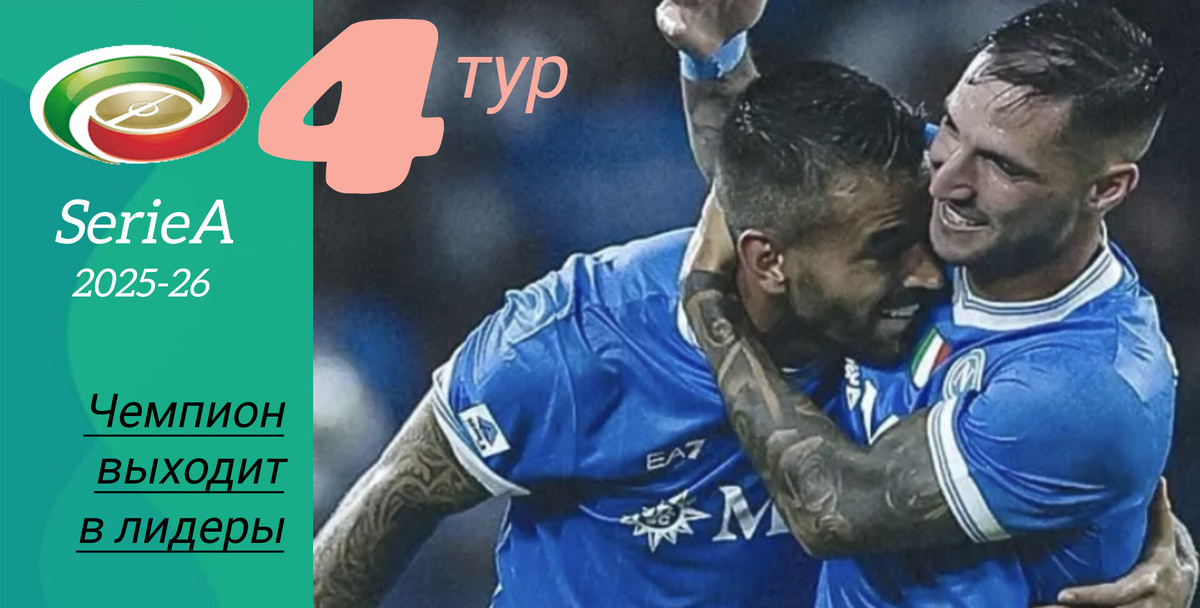 Первые очки в чемпионате потерял Ювентус, который на выезде не справился с Вероной. А вот Наполи, одержав победу и в четвёртом матче, единолично возглавил турнирную таблицу. Роме хватило всего одного гола, чтобы переиграть в столичном дерби Лацио. Милан же порадовал своих болельщиков крупной победой в Удине.