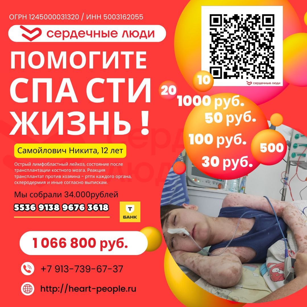 Страшнее РАКа! Отторжение клеток! Спасите Никиту! Друзья, наш новый подопечный Никита с двух лет бьётся за своё право жить в этом мире. А его главный враг, острый лейкоз, отнял здоровье его органов, кожи, мышц, костей, зубов. Мужеством и оптимизмом мальчика можно лишь восхищаться. Но ещё ему можно и очень нужно помочь. Ведь только от регулярных реабилитаций зависит его дальнейшая жизнь.