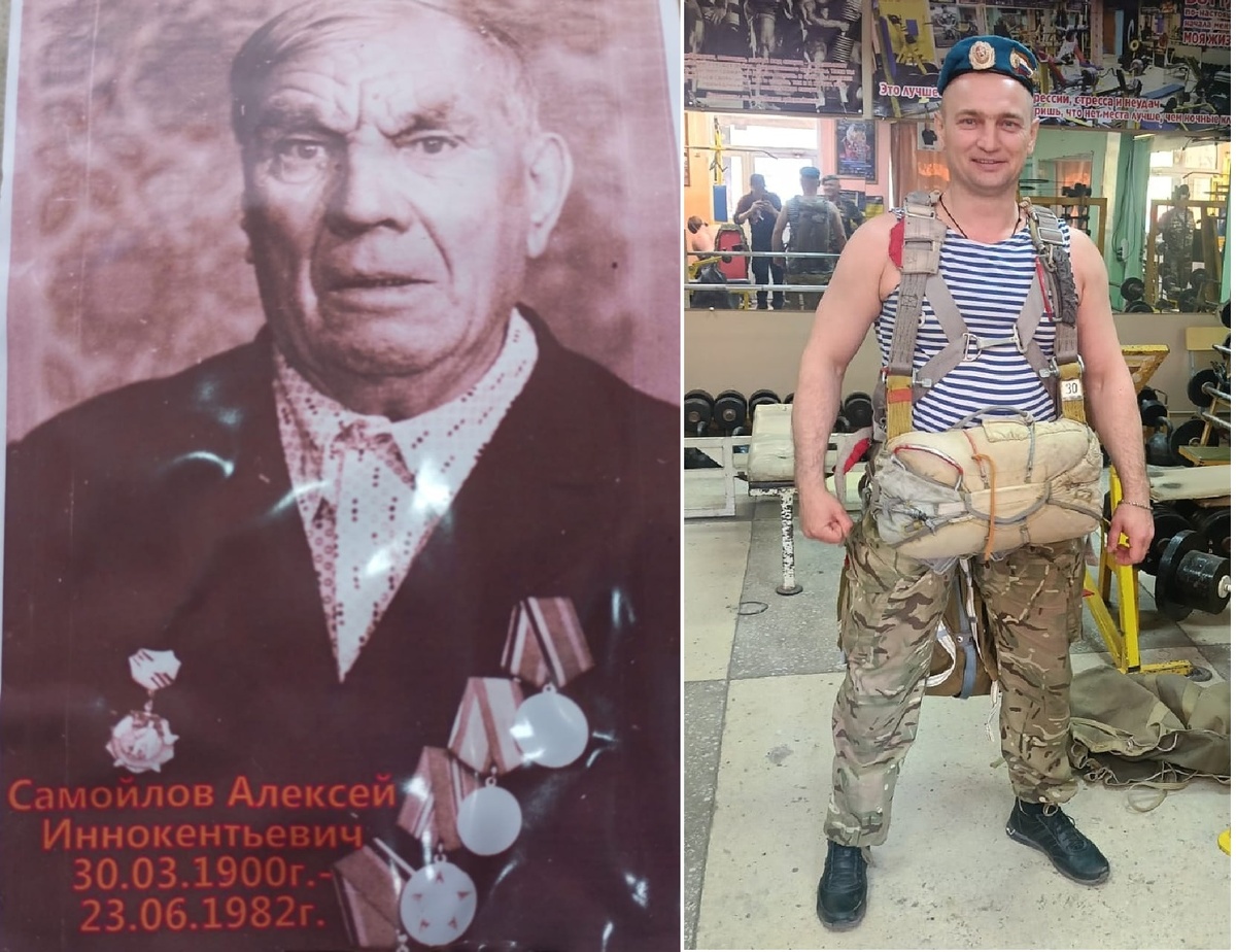 Ветеран СВО Дмитрий Рыжаков – правнук двух фронтовиков: Алексея Самойлова и Карпа Рыжакова. По примеру предков он пошел защищать Родину от врага. Принять участие в СВО посчитал делом чести. История Великой Отечественной войны тесно связана с жизнью предков Дмитрия Рыжакова. Его прадед Карп Калистратович Рыжаков с 1942 года служил санитаром в 6-й стрелковой роте 204-го Гвардейского стрелкового полка 69-й гвардейской стрелковой дивизии. Но однажды вражеская пуля перебила санитару сухожилие. После войны он вернулся в родную деревню Сутай Качугского района к семье. Другой прадед, Алексей Иннокентьевич Самойлов, в период с 1942 по 1944 год воевал в составе 74-го стрелкового полка. Во время одного из сражений был тяжело ранен в голову и оправлен в Новосибирский эвакуационный госпиталь. Семье же сообщили, что он погиб. Однако его жена Фекла Александровна не опускала руки: нужно было растить младших детей и помогать фронту. Она пряла пряжу из бараньей шерсти, вязала носки и варежки для красно
