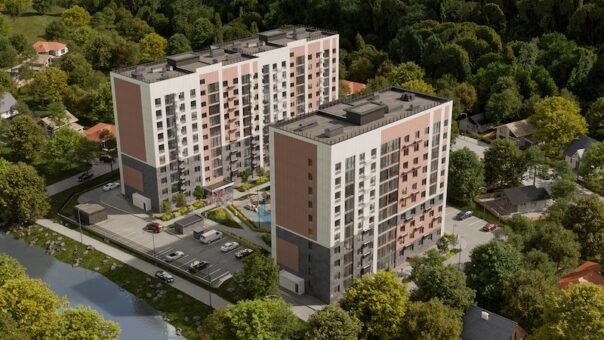 Опираясь на контекст, разработчики предусмотрели для фасадов домов исключительно натуральные цвета – бежевый, пудровый, графитовый. Тем самым авторы подчеркнули архитектурный ансамбль города, не перегружая его. А чтобы окружающая красота раскрывалась по полной, они запроектировали в квартирах витражное остекление окон.