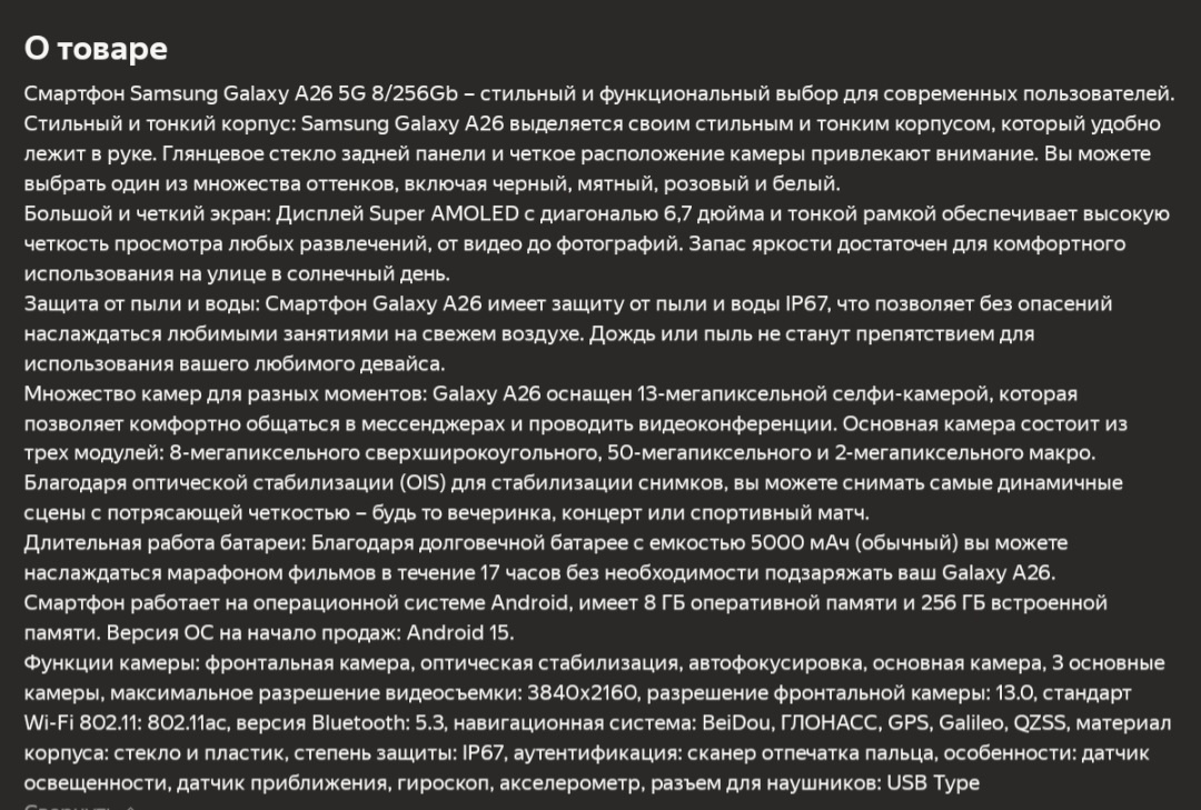 Смартфон Samsung Galaxy A26 5G 8/256Gb, Dual nano SIM, Белый