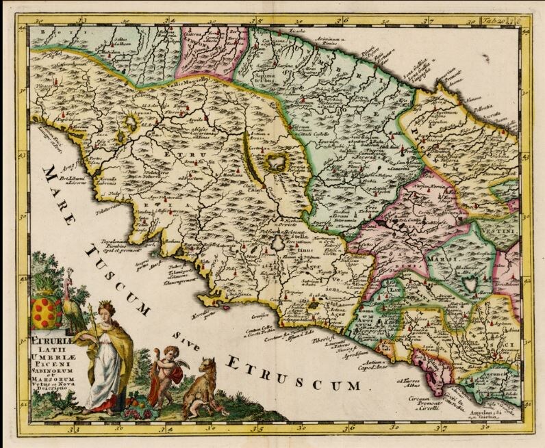 Видимо, карта отражает существовавшие в конце XVII столетия представления о политической географии Апеннинского полуострова в середине I тысячелетия до н.э.. Это несколько устаревшие представления, – Этрурия никогда не была государством, или даже единым племенным союзом, а лишь конгломератом враждующих полисов.