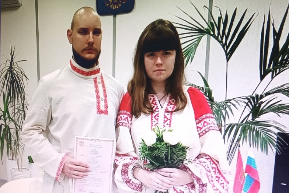 Жители Брянска Вячеслав и Екатерина поженились в славянских костюмах — дабы почувствовать связь с корнями. Их брак зарегистрировали в отделе ЗАГС Фокинского района Брянска, рассказали в Управлении ЗАГС Брянской области. Молодожены рассказали, что познакомились год назад на концерте брянской фолк-металл группы "Сарма". Вячеслав очень интересуется историей, особенно славянскими традициями. Говорит, что ему с детства нравились былины, русские народные сказки, фольклор. И сам он человек творческий — играет на струнных музыкальных инструментах, рисует. Екатерина всегда увлекалась ритмичной музыкой, одевалась в байкерском стиле, но благодаря Вячеславу открыла для себя фолк, стала интересоваться славянским и скандинавским фольклором.