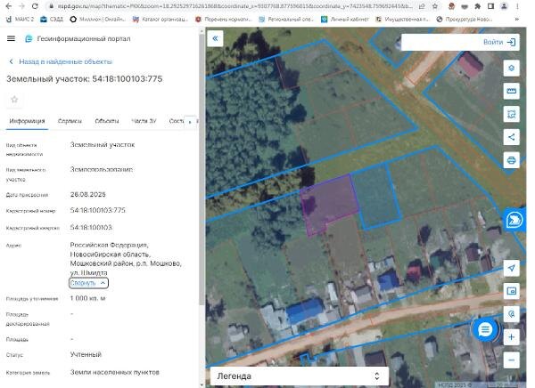 Название: Земельный участок с кадастровым номером 54:18:100103:775, местоположение: Российская Федерация, Новосибирская область, Мошковский