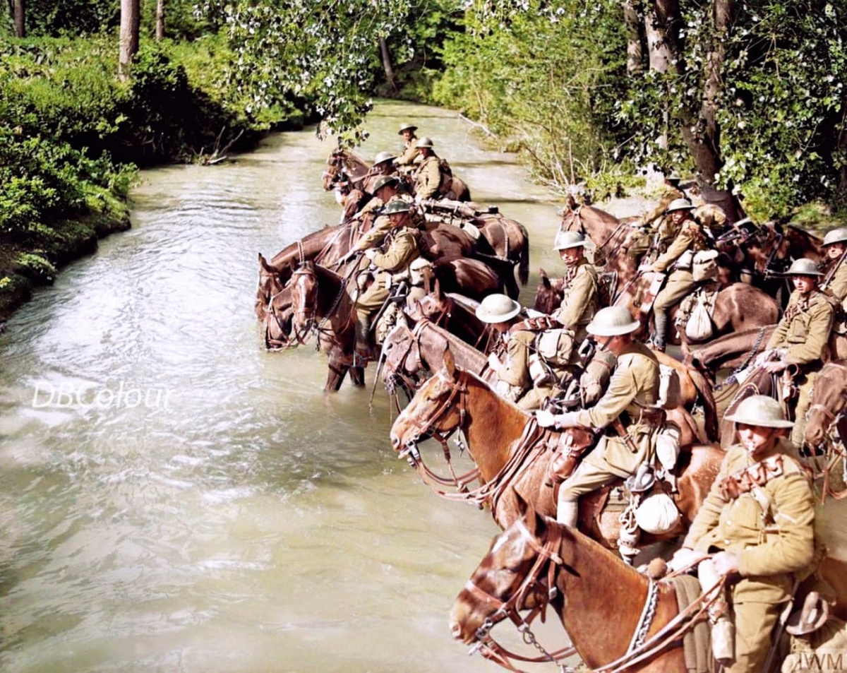 Британская кавалерия переправляется через реку Оти, 17 сентября 1918 года