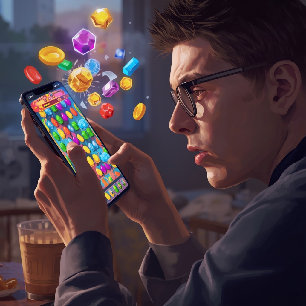 Жена смеётся над моими достижениями: "Ты собрал миллион конфет в виртуальном мире!" Пытаюсь объяснить, что это развивает логическое мышление и реакцию. Но сам понимаю - трачу время на цифровые пустышки вместо реальных дел.