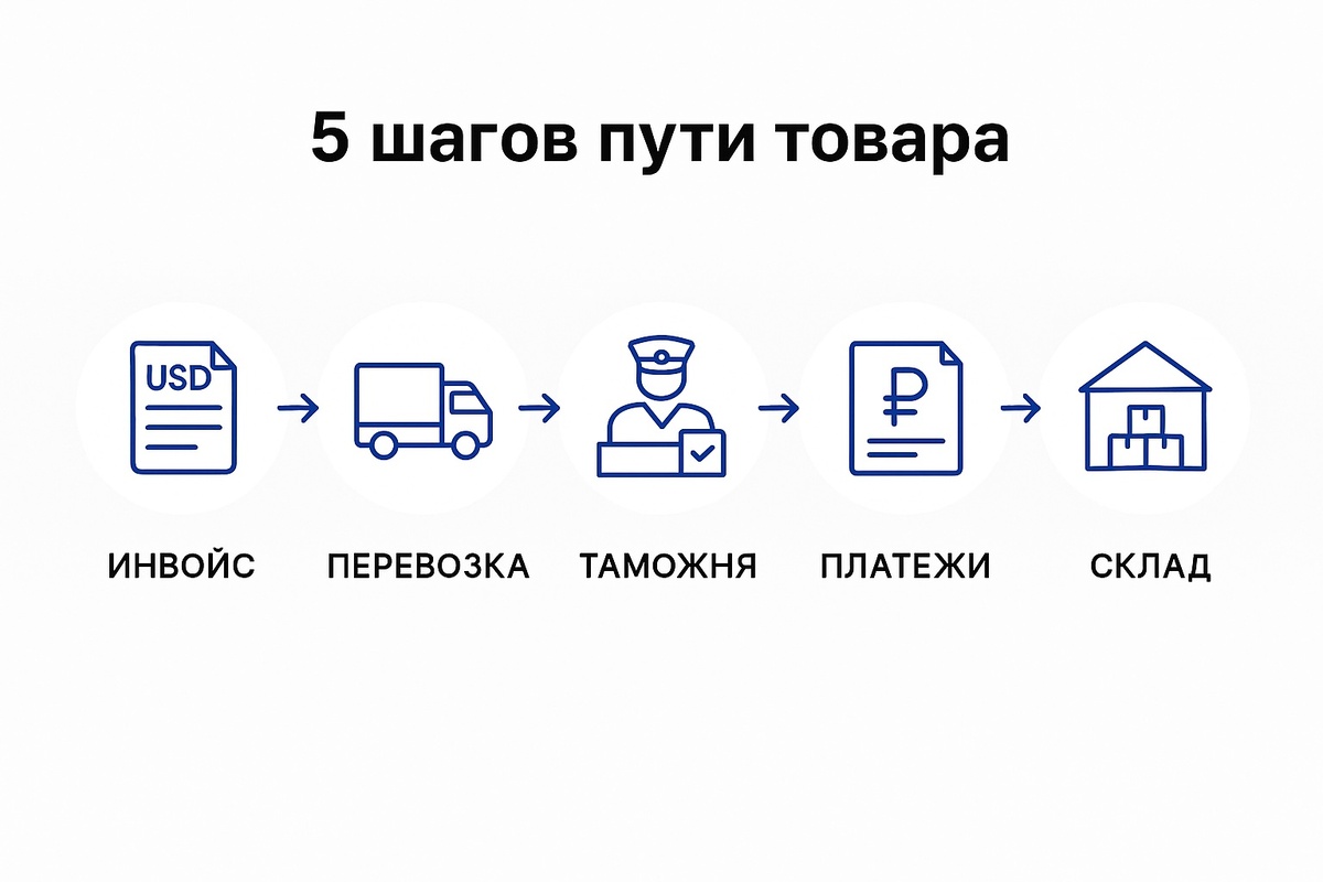 Импорт из Китая — это не только выгодная цена и широкий выбор товаров, но и цепочка обязательных процедур, без которых груз не дойдёт до вашего склада. Многие предприниматели боятся, что процесс слишком сложный, и именно поэтому идут в «карго-схемы». На самом деле «белая» поставка вполне понятна, если разбить её на шаги. Давайте рассмотрим весь путь — от выставленного инвойса до поступления товара на склад в России. Всё начинается с документов от поставщика: Эти документы — основа для дальнейшего оформления. Без них таможня просто не пропустит груз. После согласования заказа нужно решить, как доставить товар в Россию: На этом этапе товар отправляется от завода до склада временного хранения (СВХ) в России. Чтобы товар выпустили в свободное обращение, нужен пакет документов: Здесь важно правильно определить код ТН ВЭД, потому что от него зависят пошлины и НДС. Обычно этим занимается таможенный брокер. Если всё верно — груз выпускается. После выпуска товар считается легально ввезённым на