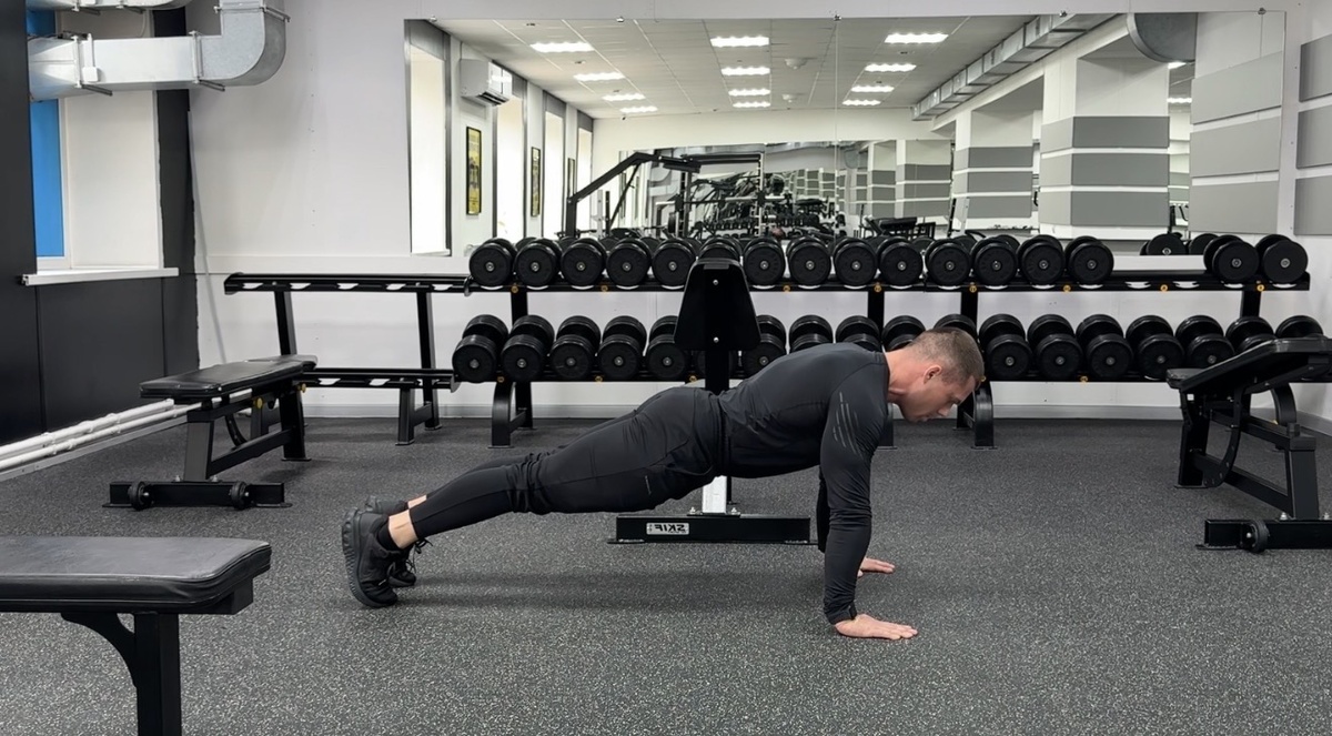 - Следите за техникой, а не за количеством. Лучше сделать 5 идеальных «алмазных» отжиманий, чем 20 кривых. Ваше тело должно быть напряженной струной — не допускайте провисания таза или выпячивания ягодиц вверх .
