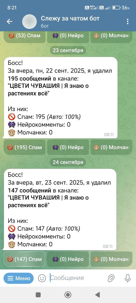 У кого свои каналы, ставьте этого товарища бота в админы. Столько спама удалять , с ума сойти можно.