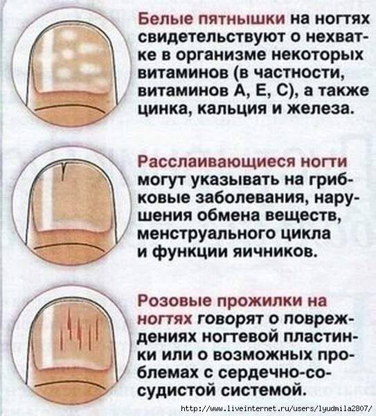 «Половинчатые» ногти, у которых проксимальная часть ногтя белая, а дистальная красная вследствие отека и изменения кровотока в ногтевом ложе, могут свидетельствовать о таких заболеваниях: