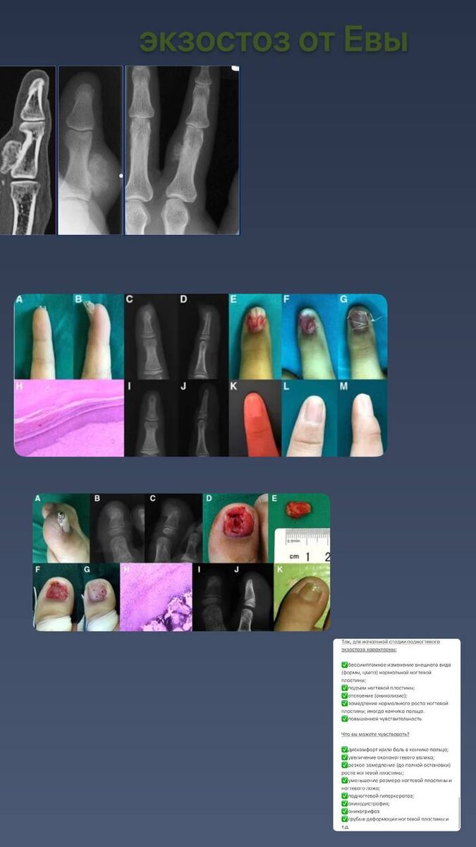 Подногтевой экзостоз представляет собой трабекулярный костный вырост с расширенным основанием, покрытый рентгенопрозрачным хрящев
