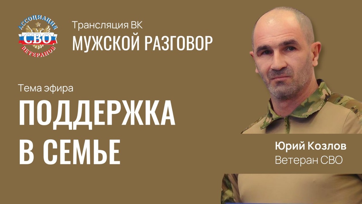 Сегодня стартовал медиа-проект Мужской разговор с ветераном СВО Юрием Козловым в формате трансляций ВК (интервью без монтажа, я спрашиваю – мне отвечают как есть) https://vk.com/video-225924384_456239044 в этом прямом эфире — честные и практичные ответы на самые важные вопросы для семей участников СВО. Юрий Козлов прошёл через это и рассказывает, какую роль сыграла его семья. Поддержите ценность проекта своим комментарием и вопросами под видео по ссылке https://vk.com/video-225924384_456239044