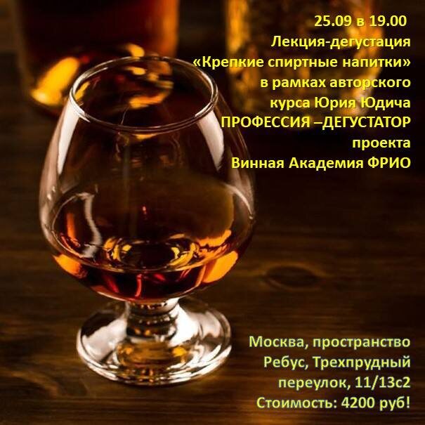 Друзья, привет! 🍷 Приглашаем вас на лекцию-дегустацию, где вы откроете для себя мир крепких напитков — от благородного виски до изысканного коньяка и зажигательного джина. В программе: ✔️Дегустация крепких напитков ✔️Ведущие дегустации - Павел Конюхов и Юрий Юдич - винный эксперт, судья международных и российских конкурсов вин, руководитель комитета ФРИО по российскому виноделию, блогер и основатель Клуба Дегустариум ✔️Открытия и вкусные эмоции! Вместе мы узнаем: 💬немного истории и традиций: как создаются и чем отличаются разные крепкие напитки; 💬разбор стилей и вкусовых профилей — от мягких и ванильных до дымных и пряных; 💬практические советы: как правильно дегустировать, с чем сочетать и как получать максимум удовольствия от каждого глотка; 💬дегустация под руководством дипломированного специалиста по крепким напиткам с 20-летним стажем — пробуем, сравниваем, делимся впечатлениями. Начало 25.09 в 19:00, пространство Ребус (м.Маяковская/Тверская). Так как формат образовательный