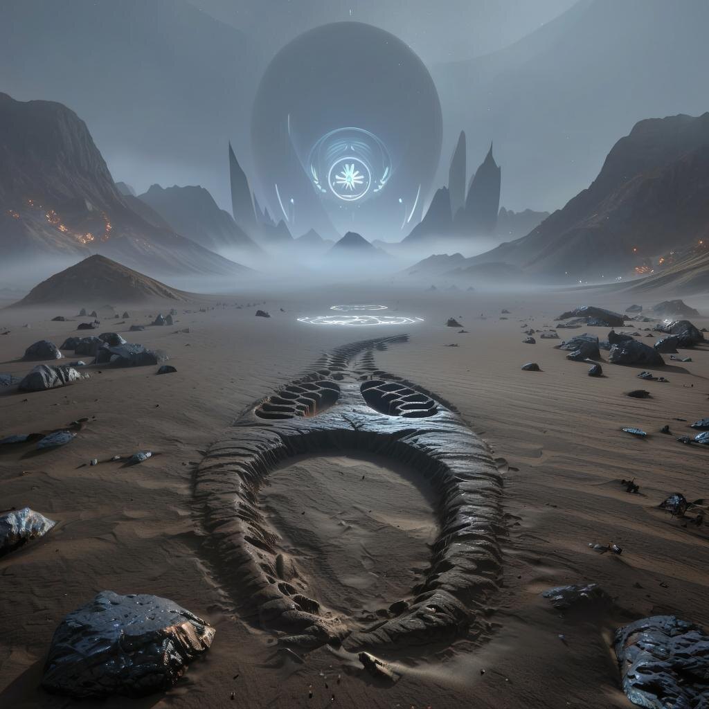 Глава первая. Загадочный след Ночь была тихой и спокойной, лишь редкие звезды мерцали на черном небе. Лес вокруг стоял неподвижно, словно застыл в ожидании чего-то необычного. Именно в этот момент в глухой чаще появилась странная фигура, светящаяся мягким голубым светом. Она двигалась плавно, почти незаметно, оставляя за собой едва заметный отпечаток на земле. След выглядел странно: глубокий, четкий, будто вырезанный ножом. Его форма была совершенно незнакомой земному глазу — ни круглая, ни квадратная, ни треугольная. Это было нечто среднее между всеми этими формами, словно природа решила создать новый вид геометрической фигуры специально для этого случая. Местные жители сразу заметили необычный след. Одни говорили, что это знак богов, другие утверждали, что это работа дьявола. Но были и те, кто считал иначе... Глава вторая. Исследование следов Ученый-биолог Алексей Смирнов первым решил изучить загадочные следы. Он собрал команду исследователей и отправился в лес, вооружившись