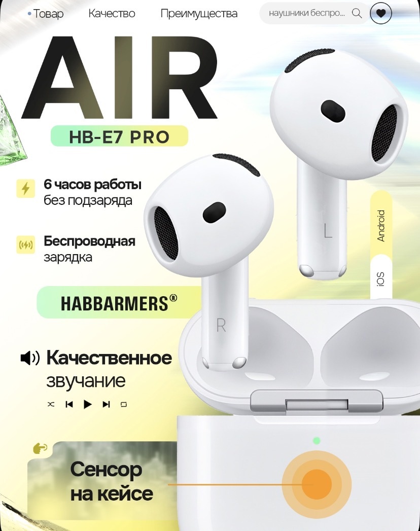 Всем доброго времени суток! Сегодня хочу поделиться с вами своими впечатлениями о беспроводных наушниках, которые я приобрёл, HABBARMERS HB-E7 PRO. Когда я достал HB-E7 PRO из коробки, первое, что бросилось в глаза – это их внешний вид. Они выглядят довольно стильно и минималистично, без лишних кричащих деталей. Материалы кажутся приятными на ощупь, сборка крепкая, ничего не скрипит и не люфтит. Что касается удобства, то тут я был приятно удивлен. Наушники легкие, и даже после нескольких часов прослушивания музыки или подкастов, уши не устают. Амбушюры мягкие и хорошо прилегают, создавая неплохую пассивную шумоизоляцию. Ну и самое главное – звук! Могу сказать, что HB-E7 PRO звучат достойно для своего ценового сегмента. Басы присутствуют, но не перебивают остальные частоты, что радует. Средние и высокие частоты тоже неплохо проработаны. Помимо основного назначения, HB-E7 PRO обладают и другими полезными функциями: Управление: Сенсорное управление на наушниках интуитивно поня