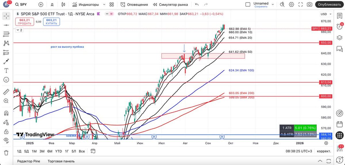 ВЫВОД: ожидаемый красный день, учитывая отдалённость техов от скользящих и то, что $QQQ у юбилея 600$ — может выступать в качестве